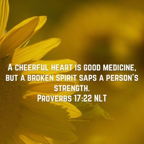 A cheerful heart is a choice. Difficulties will come. Tragedy will occur. But the resilient spirit will see joy in the midst of calamity. A crushed spirit dwells on problems not possibilities. A crushed spirit relies on their own strength or the strength of others to flourish. When human effort fails, and it will, strength is sapped away. When we place our hope in God we can look adversity in the eye with a cheerful heart. This is impossible without Jesus Christ as Lord.