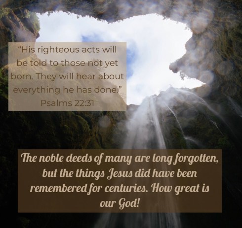 The noble deeds of many are long forgotten, but the things Jesus did have been remembered for centuries. Why? Because his efforts were not to bring a better name to himself, they were to better the lives of mankind. 100 years from now people won’t remember how many toys you had or how many likes you had on some social media post. What they may remember, however, is how you made life better for others.