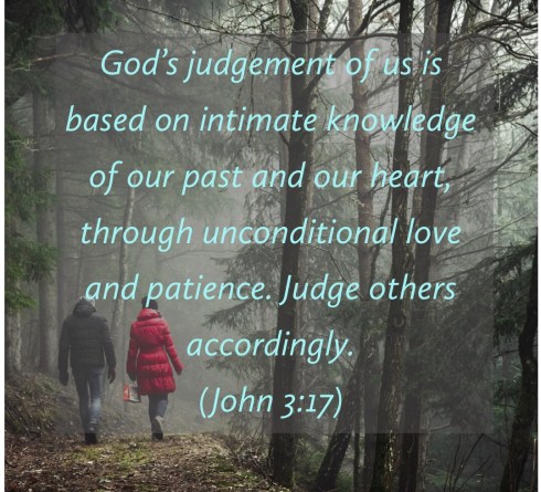 God’s judgement is sure. God’s judgement is right and just. But God’s judgement is also done with divine knowledge, patience, unconditional love and grace. It is never done to destroy, but to try to bring those sheep he loves into the fold. The father of the prodigal didn’t spend his time judging, he spent it looking down the road.
