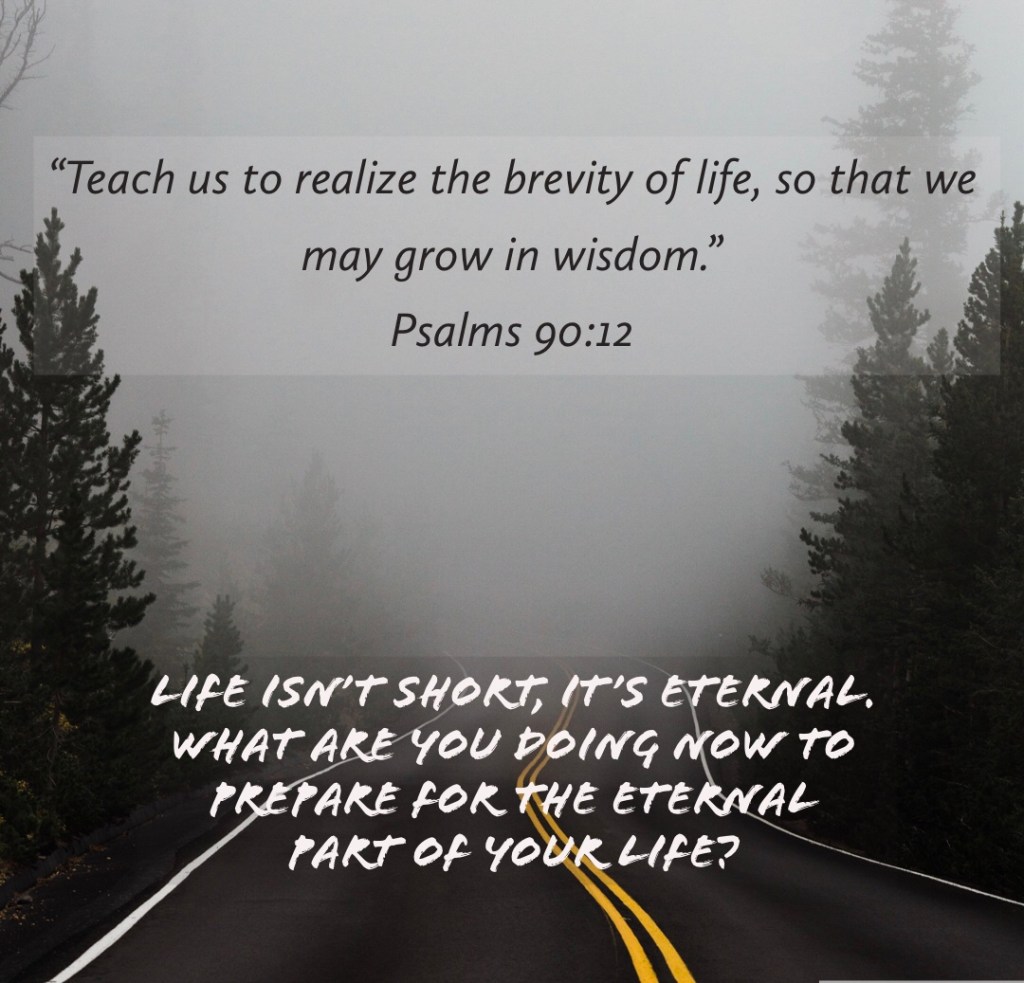 “Life is short”. We’ve heard it said. Perhaps we’ve said it ourselves. There is a lot of truth to the statement. The Psalmist even verifies it…somewhat. We never really know when this earthly adventure will end. Some live over a century; some a few years; some for minutes. Life is short isn’t a mandate to party or fill your life with every creature comfort you can, it’s a mandate to live wisely.