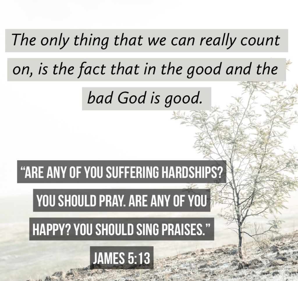 You may have heard that said, or you may have even said it yourself. James pens this verse to remind us that when life is unbearable we need to cry out to God. On the other hand, during the good times we need to praise God. In one sense, James is saying the same thing twice. The prayers we offer up when life is hard are prayers of petition. The praise we offer up when life is good are prayers of gratitude . Either way, regardless of the way life is, James teaches us that we should always go to God.