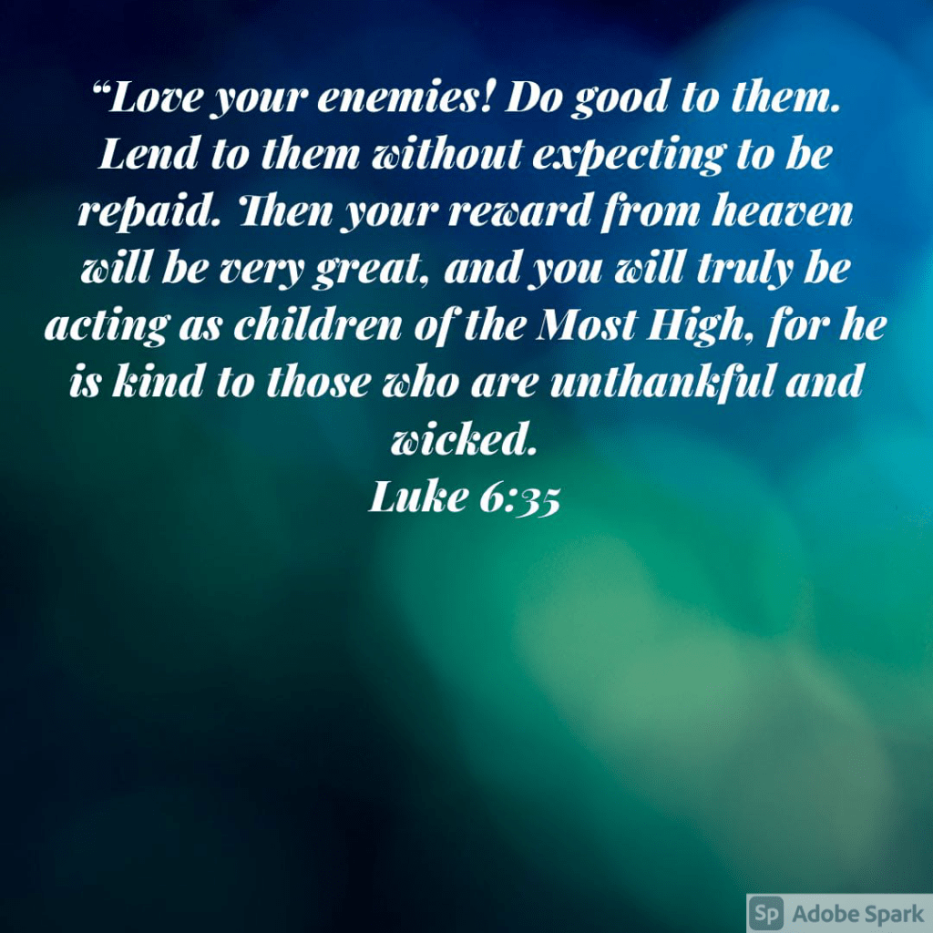 Yet the words Jesus speaks in Luke still ring true today. As believers in Jesus we should never be guilty of speaking evil against anyone. That’s hard to do in our culture. But it’s what Jesus did. We are called to love our enemies, to giving to them, to be understanding of them even when we don’t agree with them.