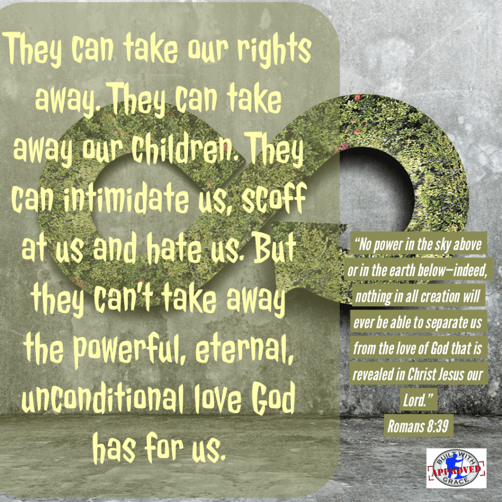 July 30, 2022 in Uncategorized | Tags: broken relationships, Built with Grace, changed lives, Christianity, church, failure, faith, God, God's love, God's promises, grace, Grace Nuggets, Holy Spirit, Jesus Christ, Restoration, Romans 8:39, strength | Leave a comment