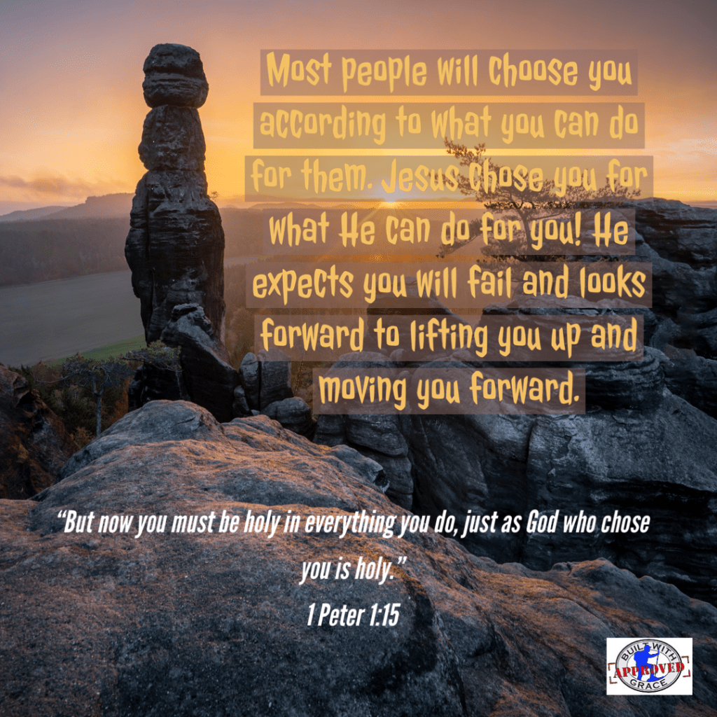 August 12, 2022 in Uncategorized | Tags: 1 Peter 1:15, Built with Grace, Christianity, forgiveness, God, God's love, grace, Grace Nuggets, Holy Spirit, Jesus Christ, love, Restoration, second chances