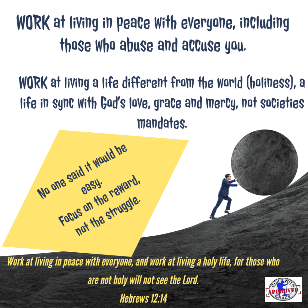 September 7, 2022 in Uncategorized | Tags: anxiety, Built with Grace, Christianity, failure, forgiveness, God, God's love, God's Word, grace, Grace Nuggets, Hebrews 12:14, Holy Bible, Holy Spirit, Hope, Jesus Christ, love, prayer, relationship, struggles | Leave a comment