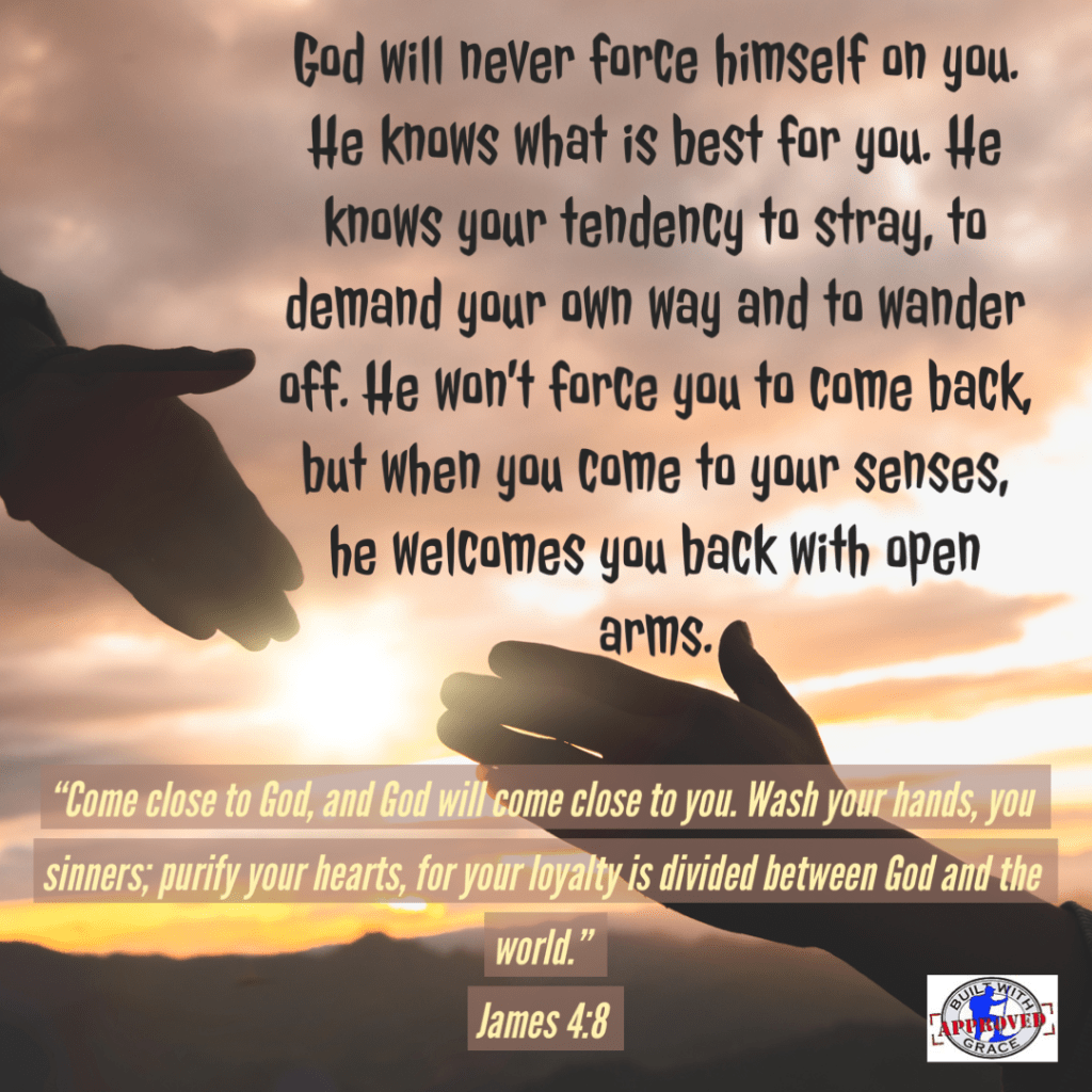 September 17, 2022 in Uncategorized | Tags: anger, Built with Grace, Christianity, God, God's love, grace, Grace Nuggets, Holy Bible, Holy Spirit, James 4:8, Jesus Christ, love, prayer, Restoration, second chances, trust | 1 comment