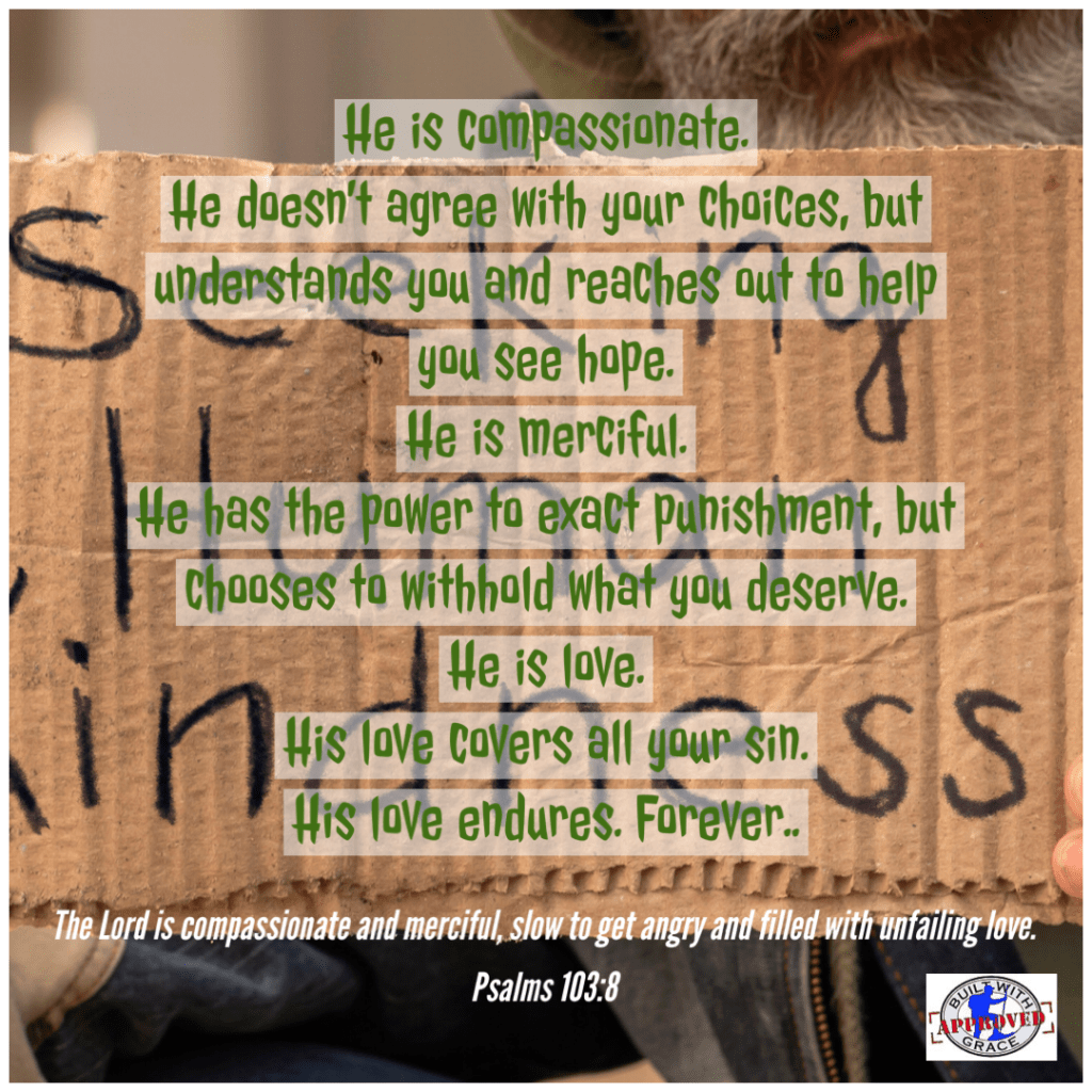 December 12, 2022 in Uncategorized | Tags: Built with Grace, Christianity, Daily Devotional, Daily Encouragement, God, God's love, grace, Grace Nuggets, Holy Bible, Holy Spirit, Hope, Jesus Christ, love, Mike Fisk, Psalm 103:8, Trusting God | Leave a comment