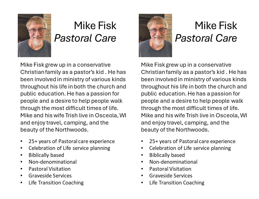 My focus as an officiant for services honoring those who have gone on before us is to provide comfort and guidance for families going through the lost of a loved one. I’m able to work with people of varying beliefs and values to provide as comforting an atmosphere as possible. Whether it is at traditional service, celebration of life service or a simple graveside service I’ll strive to provide words of encouragement, times of reflection and reasons for hope.