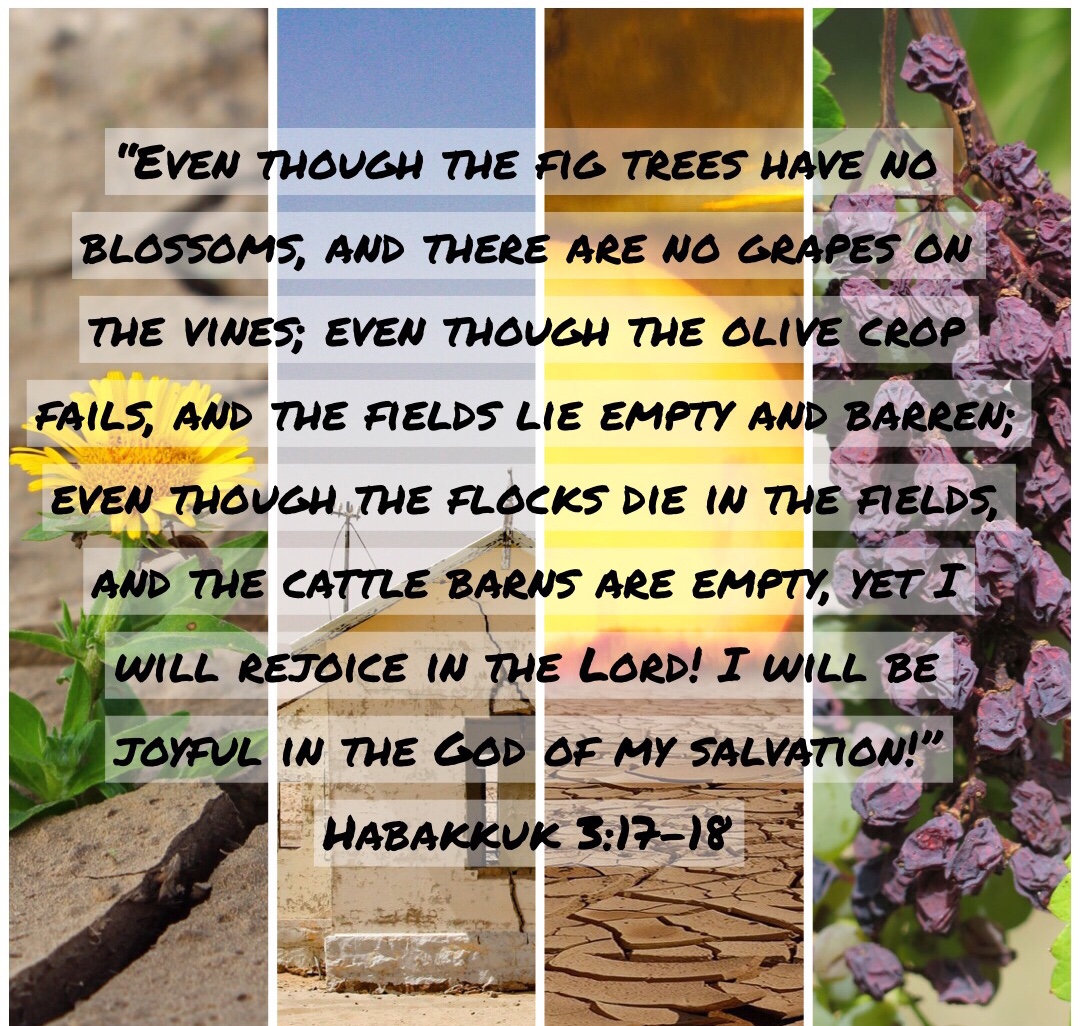 I’ve read these verses a hundred times before I realized what total devastation is being described. The entire economy of the nation Israel was dependent on agriculture. We are blessed today to be diverse in our economy and global in our accessibility of the staples of life. Not so the readers of Habakkuk.