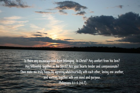Therefore if there is any encouragement in Christ, if there is any consolation of love, if there is any fellowship of the Spirit, if any affection and compassion, make my joy complete by being of the same mind, maintaining the same love, united in spirit, intent on one purpose. Philippians 2:1-2 (NASB)