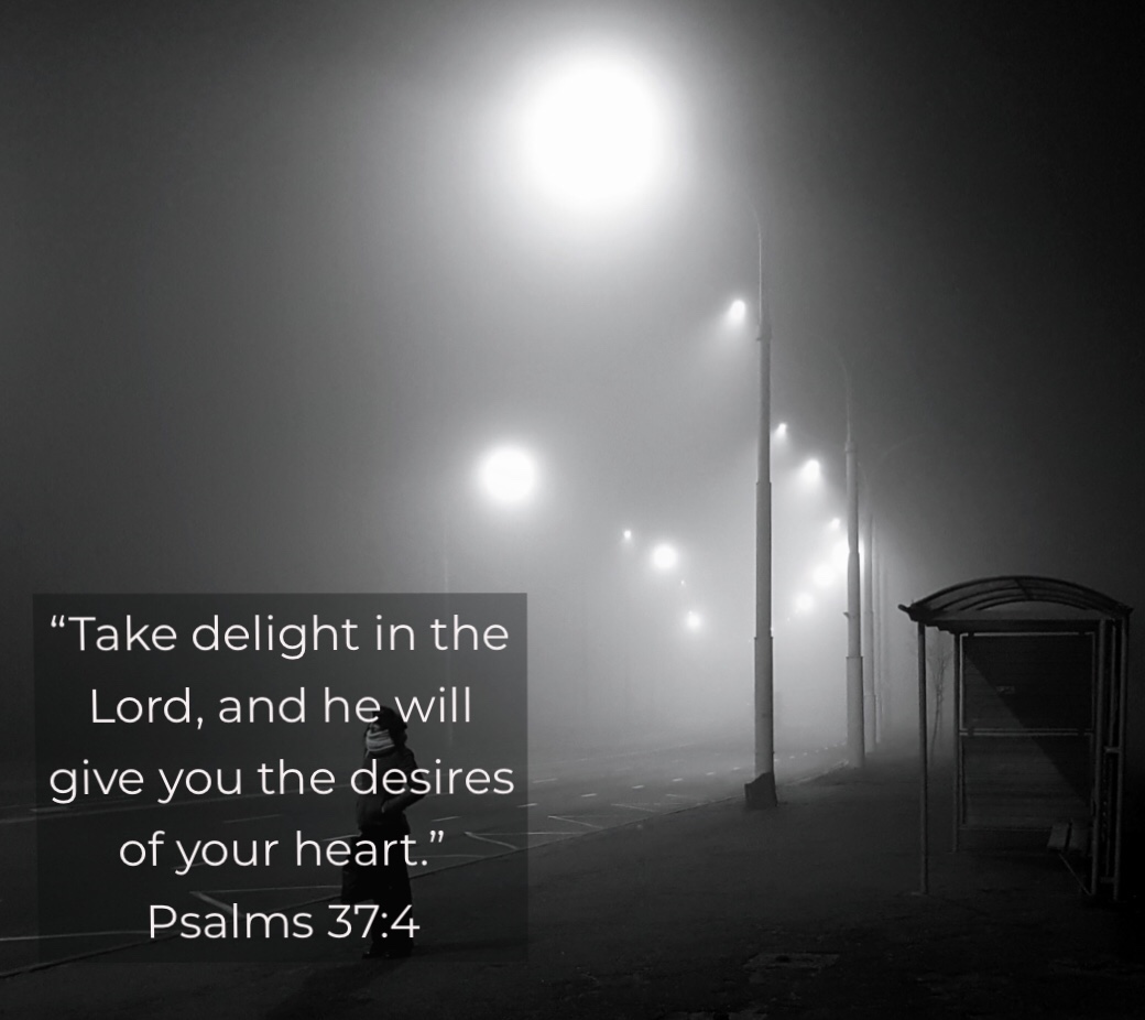 Taking delight in there Lord is easy when the bills are paid, the kids are stellar, you love your job and your weight is right on with the insurance charts. Taking delight in the Lord is easy when the doctors report is good and the bank calls asking to borrow some of your money because they are a little short this month. But for the rest of us, it’s hard to take delight when life is hard. In those times we need to hold tight to the promises and not reality from our perspective. Most of the time we struggle to take delight in the Lord because we rely more on our heart than on the promises of God We trust ourselves more than we trust him. Don’t follow your heart! The Bible tells us that over and over again. It can’t be trusted. The heart is in tune with the enemy and focuses on disappointment and fear. The heart focusing on God’s promises reminds us of the hope we have in him even when the world seems dark around us.