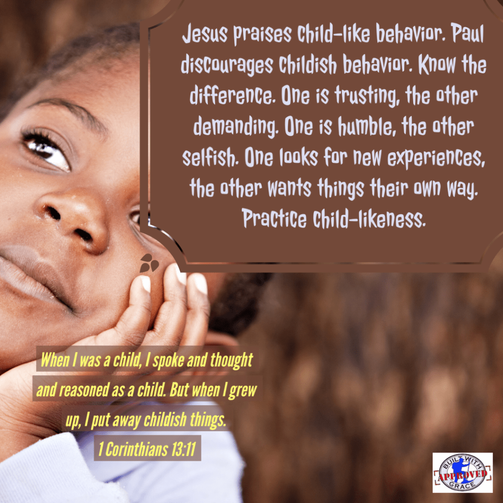 March 6, 2023 in Uncategorized | Tags: 1 Corinthians 13:11, acceptance, Built with Grace, changed lives, Christianity, church, Daily Devotional, Daily Encouragement, God, God's love, God's promises, God's Word, grace, Grace Nuggets, Holy Bible, Holy Spirit, Jesus Christ, Mike Fisk, second chances, Trusting God, Wisdom | 2 comments